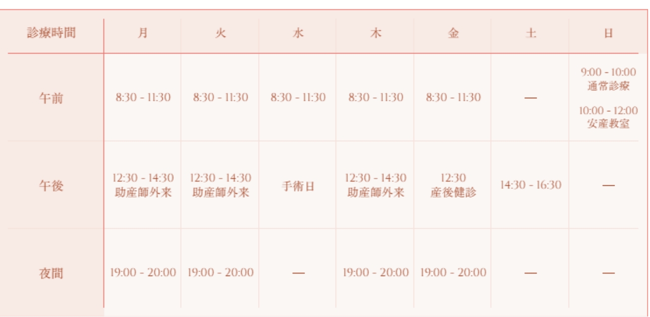 妊婦健診はいずれの日時も完全予約制です。
